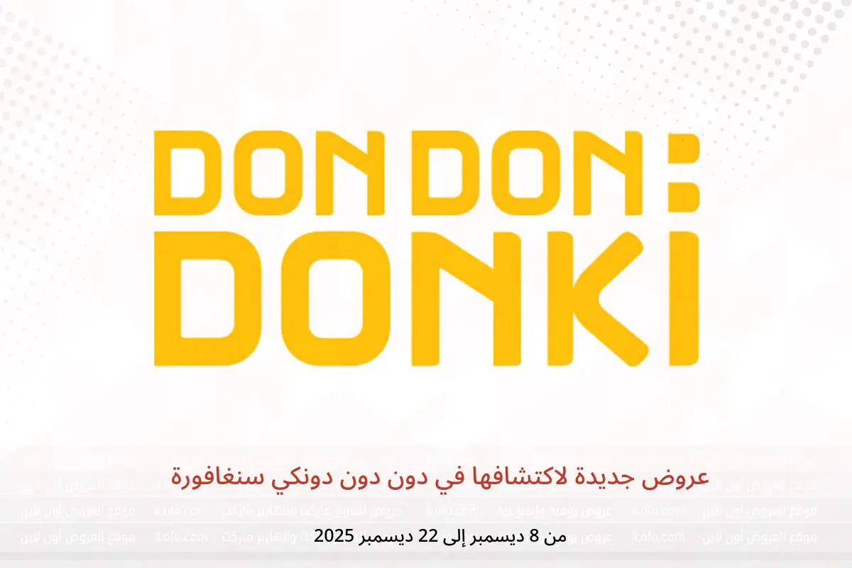 صور وأسعار عروض جديدة لاكتشافها في دون دون دونكي سنغافورة المعروضة هنا لأغراض توضيحية فقط ومتاحة من الاثنين, 8 ديسمبر 2025 حتي الاثنين, 22 ديسمبر 2025 ،من i L O F O . C O M.