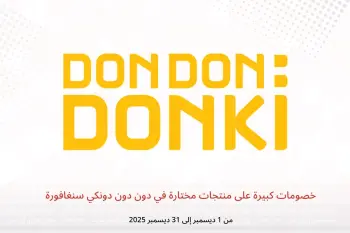 صور وأسعار خصومات كبيرة على منتجات مختارة في دون دون دونكي سنغافورة المعروضة هنا لأغراض توضيحية فقط ومتاحة من الاثنين, 1 ديسمبر 2025 حتي الأربعاء, 31 ديسمبر 2025 ،من i L O F O . C O M.