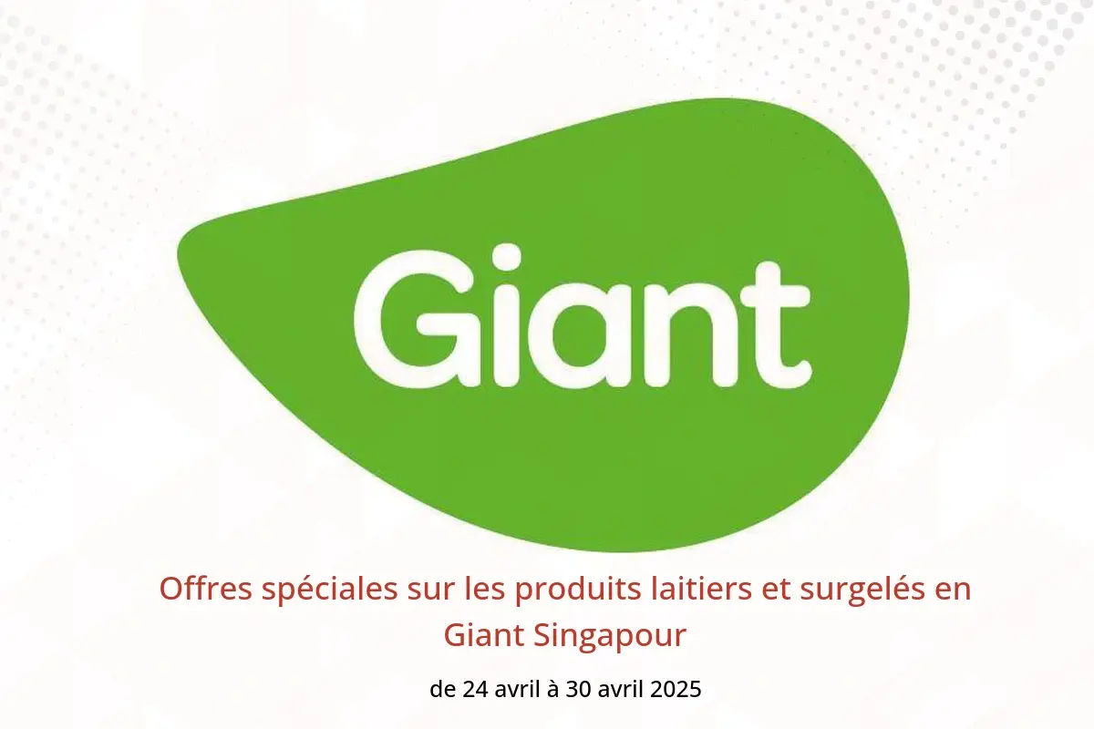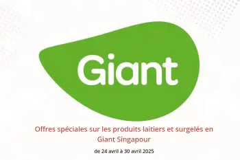 Giant Singapour annonce de nouvelles réductions intitulées « Offres spéciales sur les produits laitiers et surgelés » disponibles jusqu'au 30 avril 2025, de nouvelles offres et prix uniquement en Singapour.